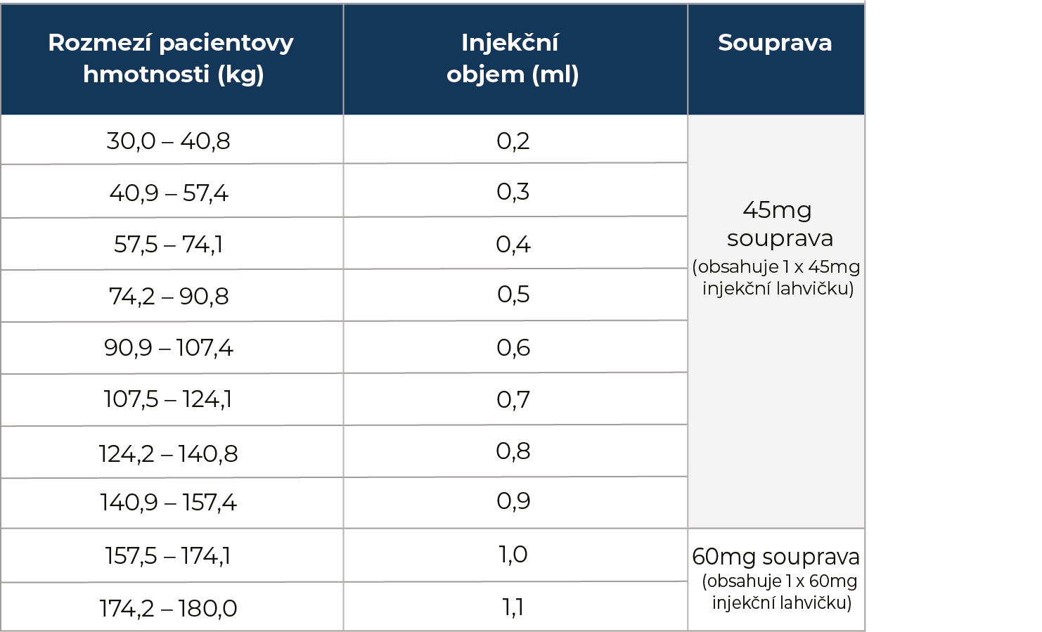 Přípravek Winrevair® se podává jednou za 3 týdny jako jednorázová subkutánní injekce podle pacientovy tělesné hmotnosti.