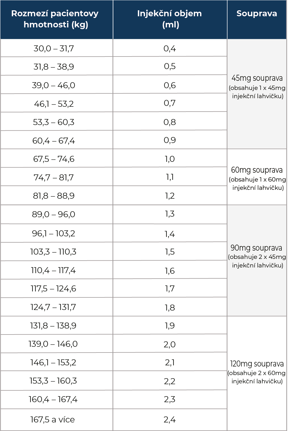 • S léčbou se má pokračovat dávkou 0,7 mg/kg každé 3 týdny, pokud není nutná úprava dávky.